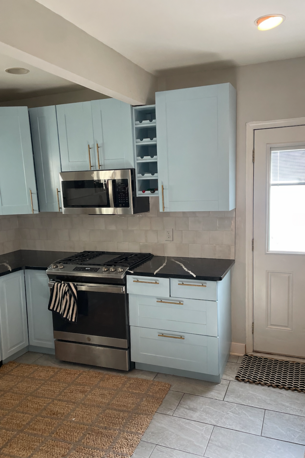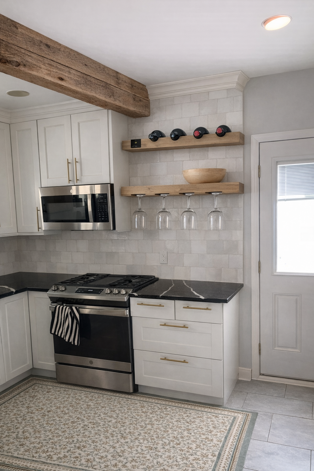 If you do the box beam I think we would have to remove the wine rack and cabinet to the right of the microwave (and even if you don’t box in the beam I would remove these two)